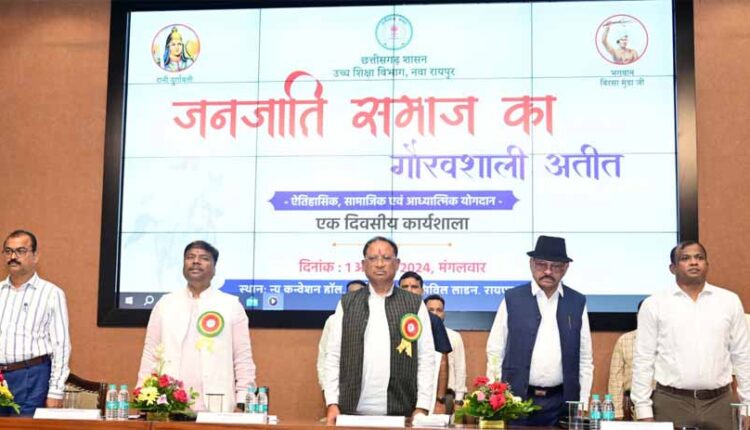 छत्तीसगढ़ में भी इसे भव्य रूप से मनाया जाएगा। मुख्यमंत्री आज राजधानी रायपुर के न्यू सर्किट हाउस में झ्जनजातीय समाज का गौरवशाली अतीत, ऐतिहासिक, सामाजिक एवं आध्यात्मिक योगदानझ् विषय पर आयोजित एक दिवसीय कार्यशाला को संबोधित कर रहे थे। कार्यक्रम की अध्यक्षता वन मंत्री श्री केदार कश्यप ने की। विधायक श्री भईयालाल राजवाड़े विशेष अतिथि के रूप में कार्यक्रम में उपस्थित थे।