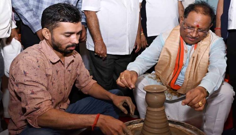 मुख्यमंत्री विष्णु देव साय ने चाक पर दिखाई कलाकारी, बनाई मिट्टी की कटोरी