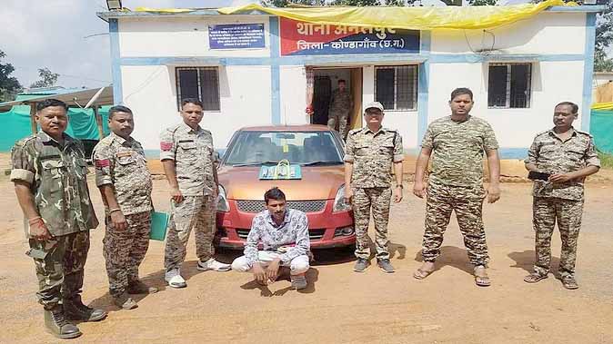 जिला कोण्डागांव के थाना अनंतपुर पुलिस ने गांजा तस्करी करने वाले आरोपी कृष्णा साहू को गिरफ्तार किया है। पुलिस को मुखबिर से सूचना मिली थी कि उमरकोट से कोण्डागांव की ओर जा रही लाल रंग की स्वीफ्ट कार (वाहन क्रं. सी.जी. 04 पी.ए. 1630) में अवैध मादक पदार्थ गांजा तस्करी की जा रही है।